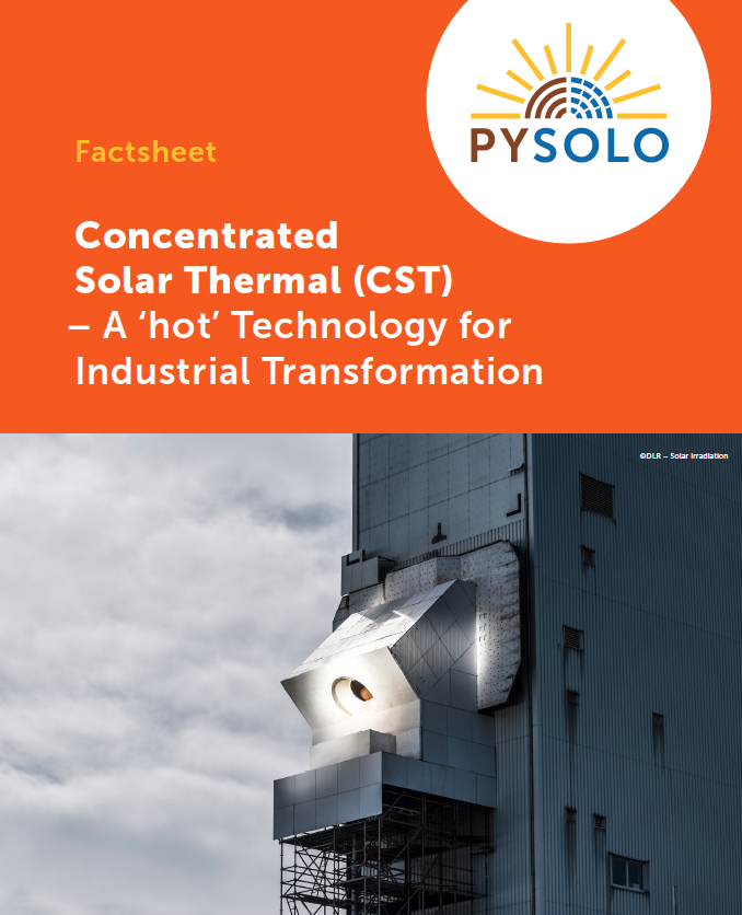 As part of the EU-funded PYSOLO project, a new factsheet on Concentrated Solar Thermal (CST) has been released. The document provides a concise yet comprehensive overview of this key technology for the industrial energy transition, outlining its applications, benefits, and current challenges.