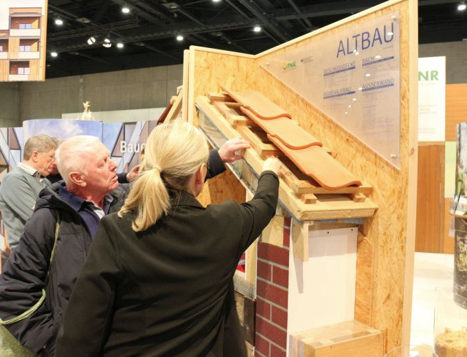 Aber auch für private Bauherren hält die FNR praktische Tipps bereit. Anhand eines großen Modells werden vielfältige Möglichkeiten zum Einsatz biobasierter Baustoffe im Neu- und Altbau demonstriert.