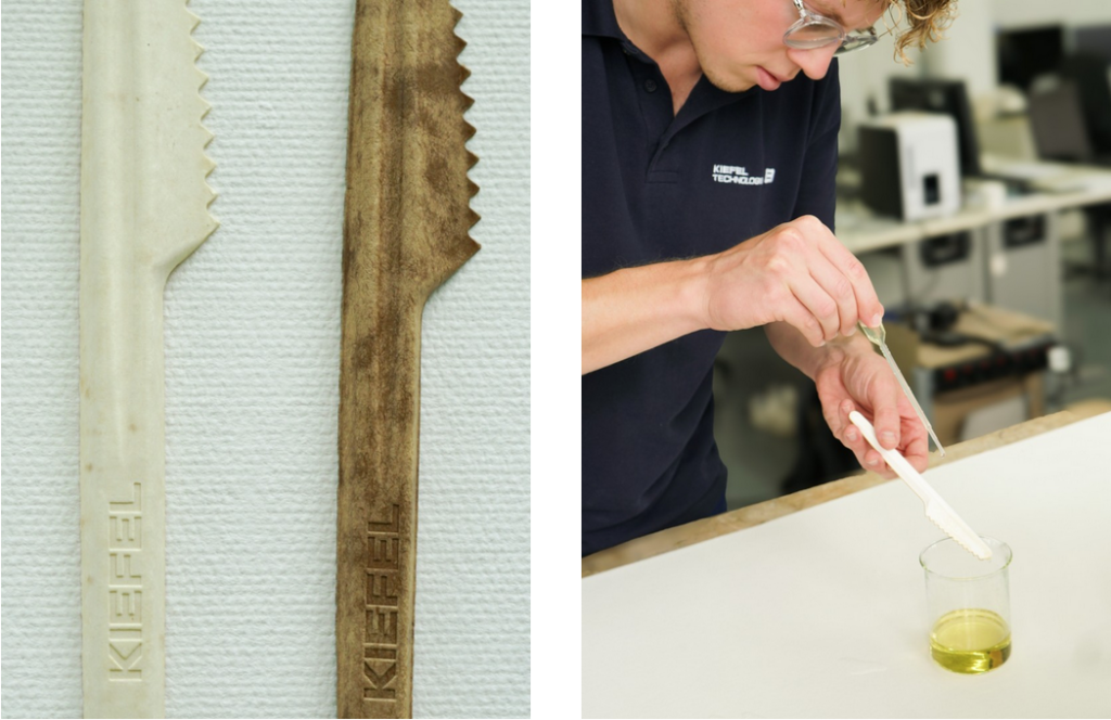 Das Ergebnis: Hochleistungs-Verpackungen, die sich wirtschaftlich und ressourcenschonend produzieren lassen. Erste Anwendungen wie Becher- und Margarinedeckel oder formstabiles Einweg-Besteck werden bereits in unseren Laboren getestet und stehen kurz vor der Marktreife.