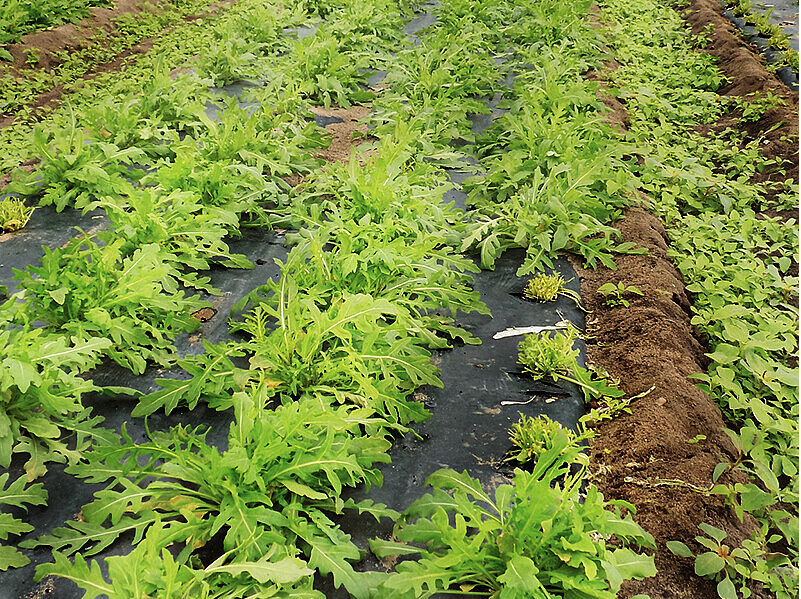 Eine biologisch abbaubare Mulchfolie unterdrückt Unkraut und fördert das Pflanzenwachstum – nach der Ernte kann sie im Boden verbleiben und zersetzt sich vollständig, ohne Mikroplastik zu hinterlassen. © Hochschule Hof