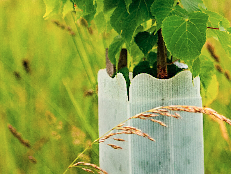 Biologisch abbaubare Wuchshüllen schützen junge Bäume vor Verbiss und zersetzen sich nach Gebrauch rückstandsfrei im Boden. © stock.adobe.com/focus finder