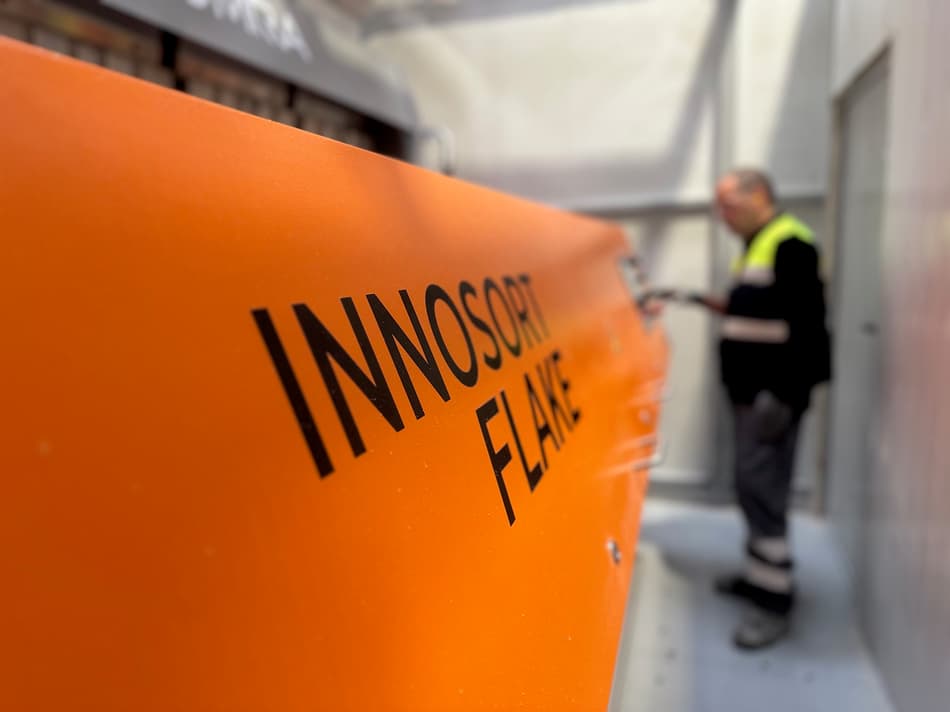Die Lösung kombiniert ein zweispuriges AUTOSORT®-System mit einem INNOSORT® FLAKE-System, die vollständig in die industrielle Anlagenkonfiguration von Sulayr integriert sind. Die Prozesskette umfasst: Materialannahme, optische Sortierung auf Schalenebene, Waschen, Zerkleinerung, Flake-Reinigung, Extrusion zu rPET in Tray-Qualität