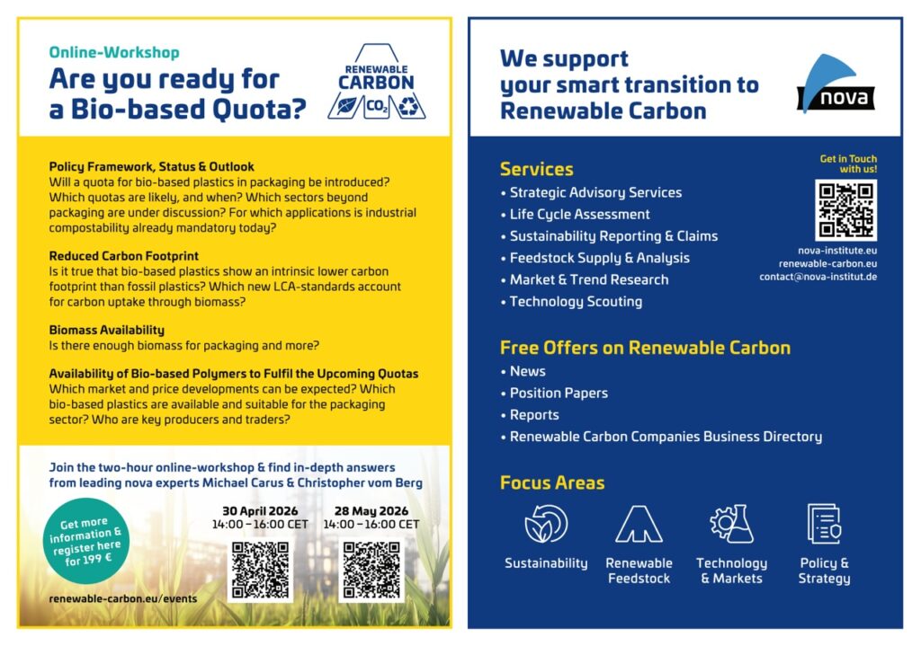 Option 2: 28 May 2026, 2 to 4 pm (CET): https://events.renewable-carbon.eu/event/are-you-prepared-for-a-bio-based-quota-2/